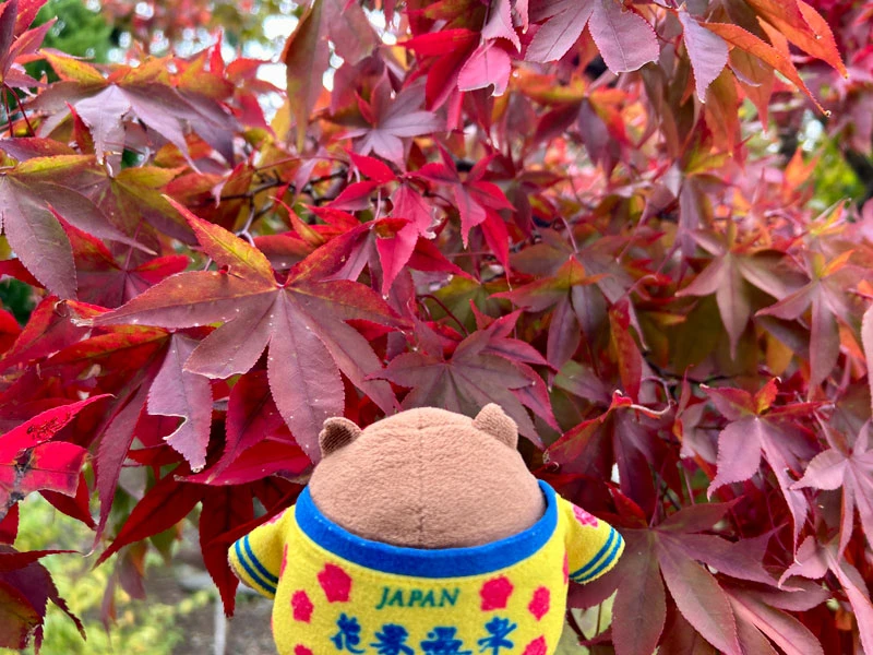 園内の木々はまだ緑が多めですが、赤く染まっている葉もだんだんと増えてきました♪